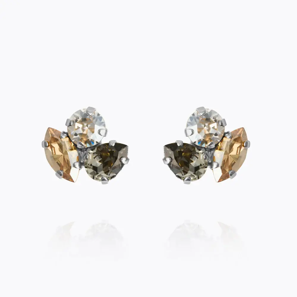 Ana Earrings Black Golden Combo – eleganta stud-örhängen med tre svart/guldkristaller och 18K-pläterad finish.