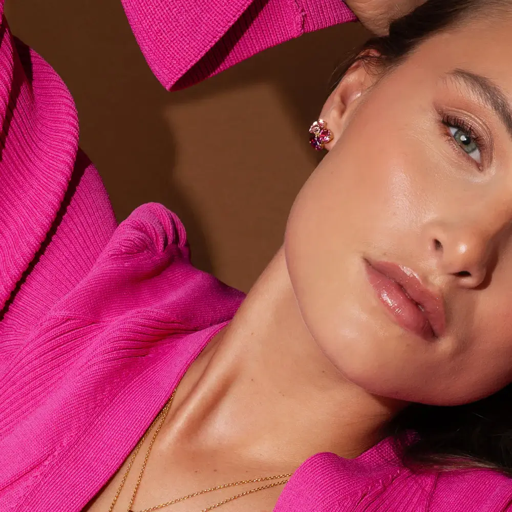Ana Earrings Dark Rose Combo är ett stilfullt och glittrande stud-örhänge från Caroline Svedbom med tre kristaller i en kombination av mörkrosaton och guld, som skapar en elegant och harmonisk lyster.