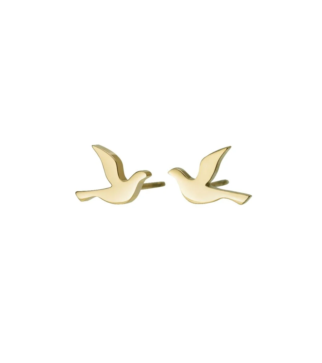 I fina serien Dove har vi lyft fram symbolen för fred! Här är örhängen med en liten duva som här ses i blank 14K guldplätering. Kombinera gärna studsen med halsbandet till.