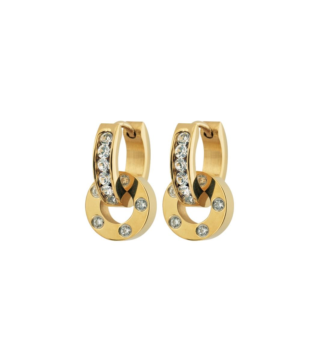 Fina Ida Orbit örhängen blir snabbt en favorit som hänger med dig länge. Ida Orbit har klara stenar på halva ringen fram och fem stycken på den hängande. Ida Orbit kommer i två färger, här i blank 14K guldplätering. Örhängena passar att kombineras till alla halsband i serien Ida.