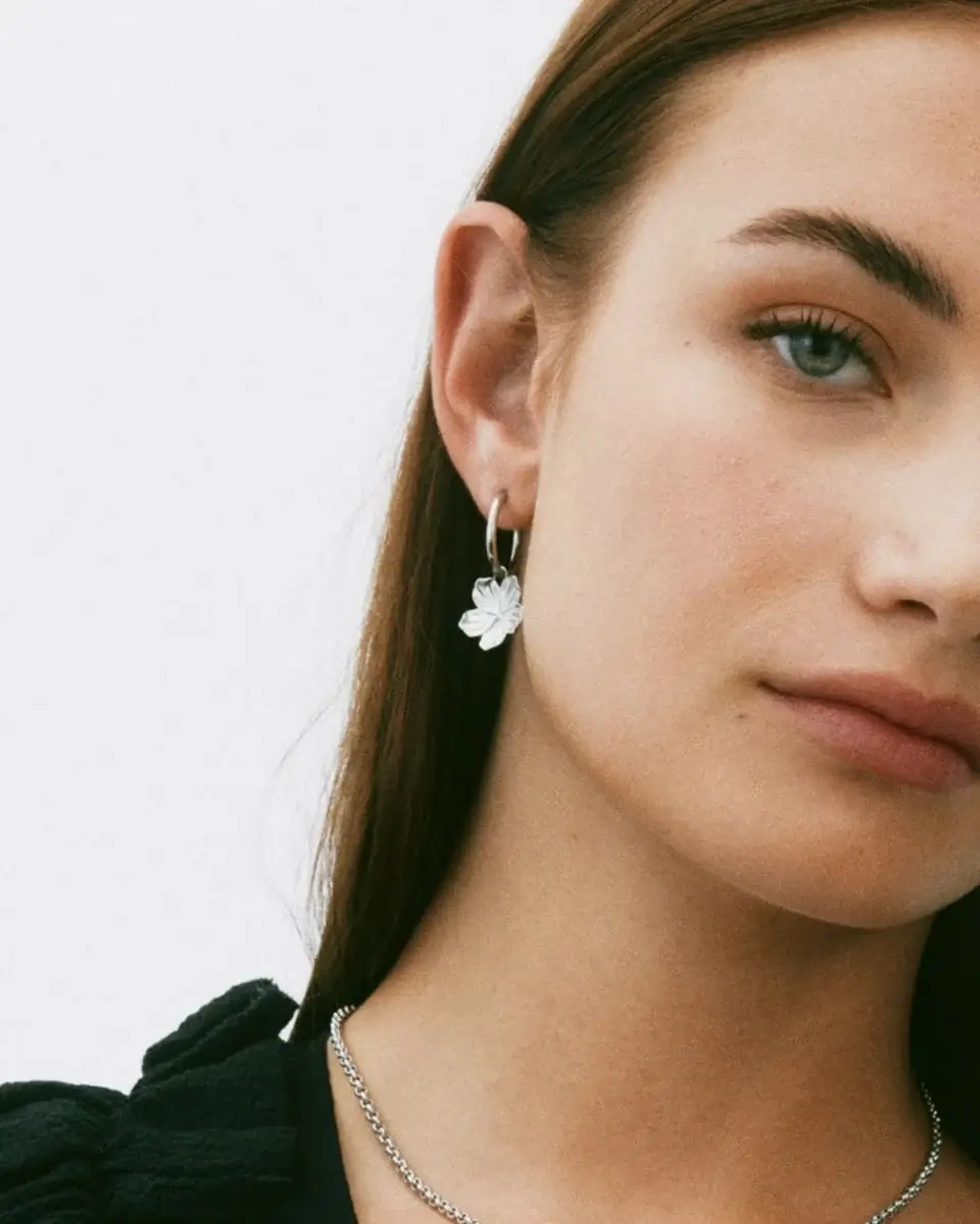 Edblad Jasmine Hoops Steel är ett par små men uttrycksfulla örhängen som fångar känslan av elegans och kärlek genom sin inspiration – jasminblomman. Serien Jasmine hyllar den vackra blomman i full blom, och dessa örhängen ger ett stilrent och romantiskt uttryck.