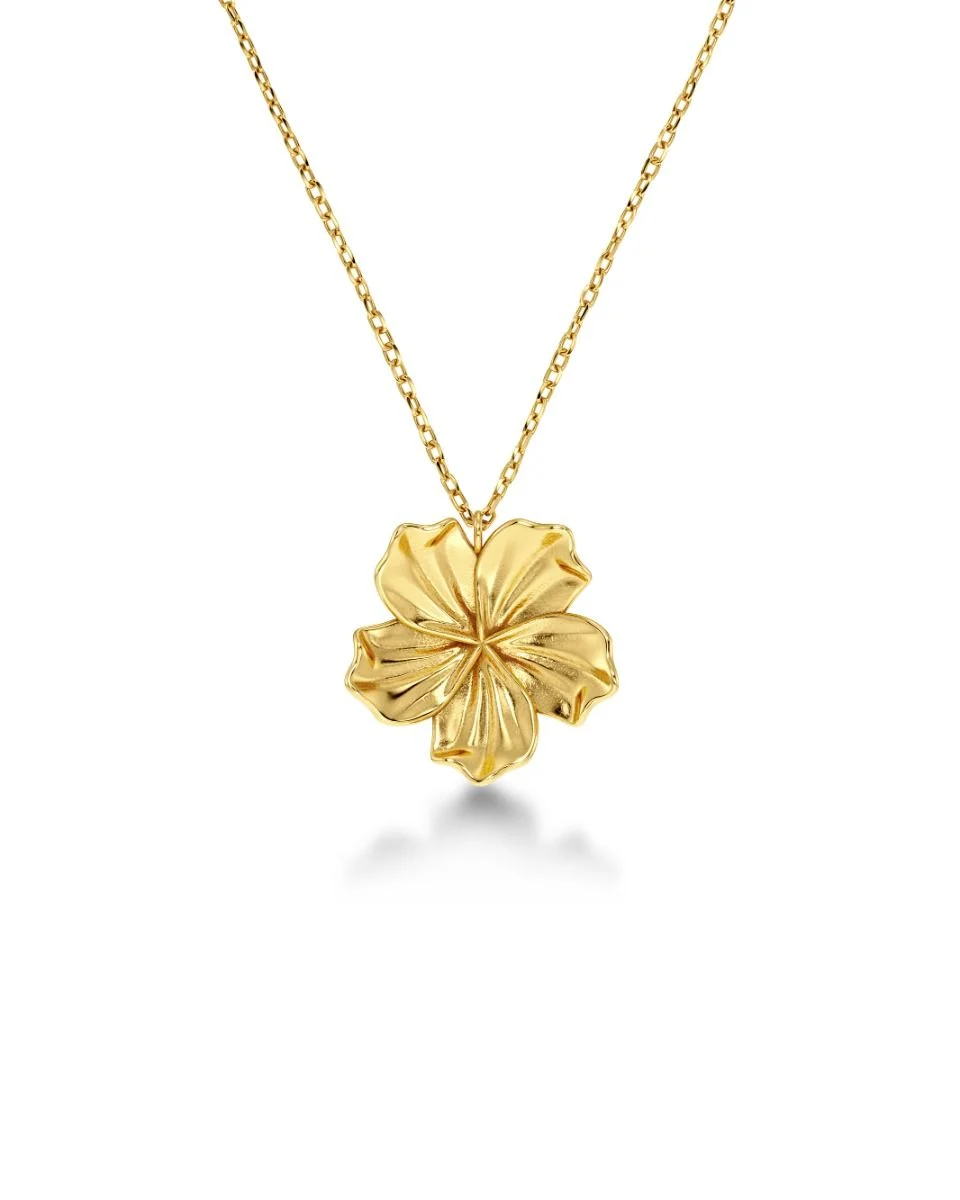 Tillverkat i blankt rostfritt stål med 14K guldplätering, erbjuder halsbandet både lyster och hållbarhet. Den nätta blomman är stilren och uttrycksfull på samma gång, vilket gör halsbandet perfekt för både vardag och fest. Kedjan är justerbar mellan 42–45 cm, vilket gör det lätt att anpassa längden efter olika plagg och tillfällen.