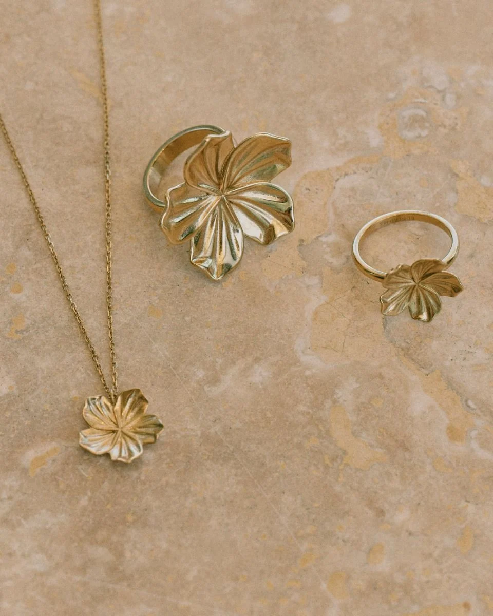 Jasmine Ring S Gold är en stilren och romantisk ring inspirerad av jasminblommans naturliga skönhet. Den mindre blomformen ger ett diskret men uttrycksfullt intryck som passar perfekt både till vardags och till mer uppklädda tillfällen. Jasmin symboliserar kärlek, styrka och elegans, vilket gör denna ring till ett meningsfullt smycke att bära eller ge bort som gåva.