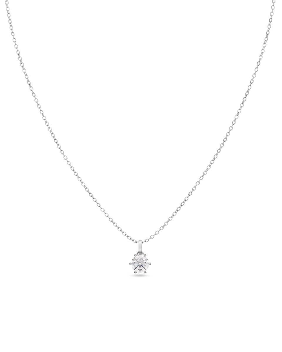 I den klassiska serien Crown kommer här ett halsband där den klara stenen är elegant infattad med sex klor. Crown halsband blir en favorit alla dagar i veckan och gärna i layering med fler halsband och kedjor. Den infattade stenen hänger i en ankarkedja och ses här i blankt rostfritt stål. Serien Crown är en mycket uppskattad present.