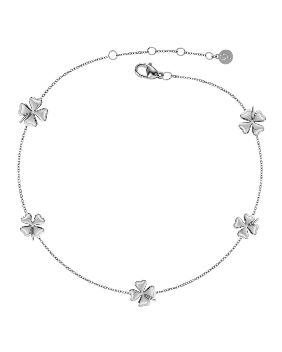 Edblad Lucky Mini Anklet Multi Silver – söt fotlänk med fem stiliserade fyrklöver i blankt rostfritt stål. Vattentålig.