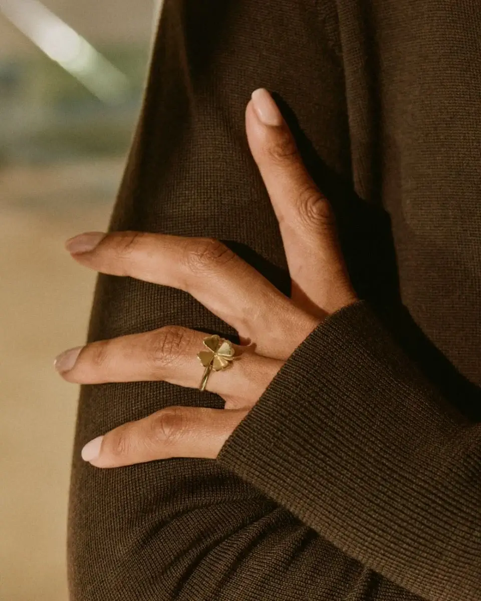 Lyxig fyrklöversring från Edblad i blank 14K guldplätering. En symbol för tur, vattentålig och nickelsäker.