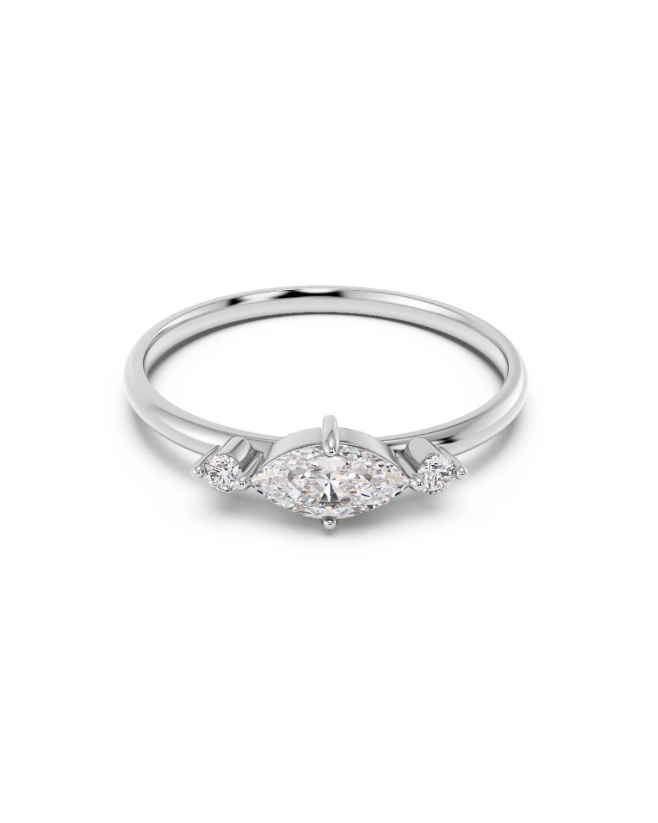 Trinny är en nedtonad, tidlös och romantisk serie som gör varje dag speciell, och som lämpar sig extra bra för speciella tillfällen som bröllop. Seriens ring, här i blankt rostfritt stål, har en triad av små vackra stenar, som daggdroppar. Den kommer i lite mindre storlek, så att den kan bäras trendriktigt som pinky ring.