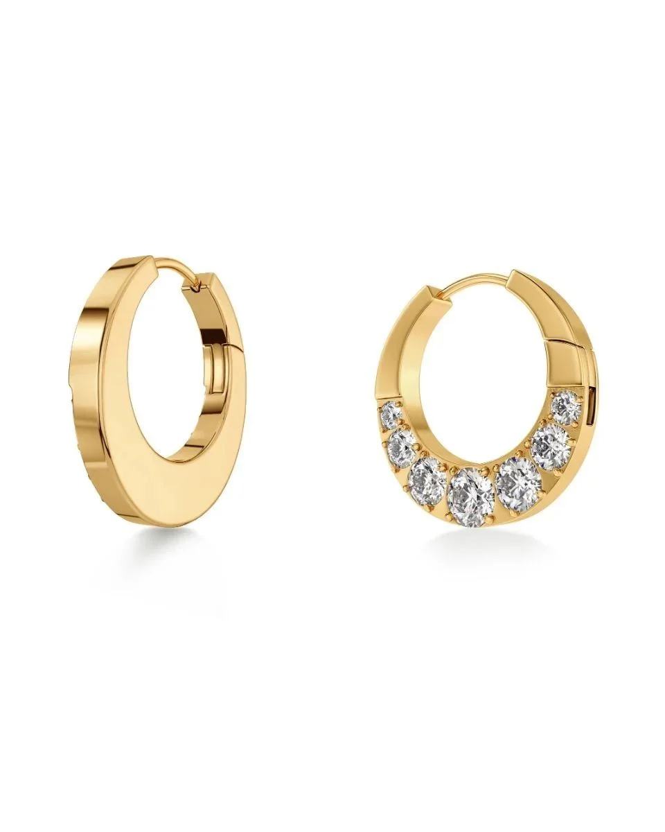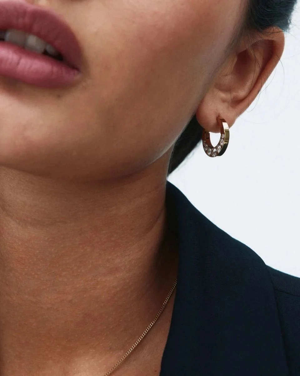 Edblad Monarch Hoops L Gold är ett par örhängen som förenar klassisk hoops-design med lyxiga detaljer. Örhängena ingår dessutom i Edblads jubileumsserie Monarch, som firar 20 år av tidlös skandinavisk smyckesdesign. De gnistrande kubiska zirkoniorna ger samtidigt varje hoops ett exklusivt skimmer som fångar ljuset vackert.
