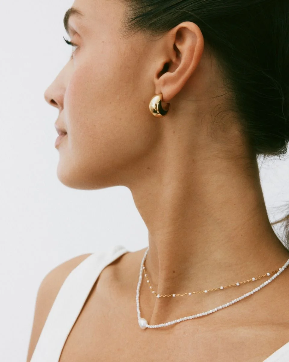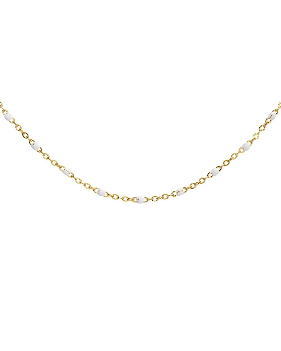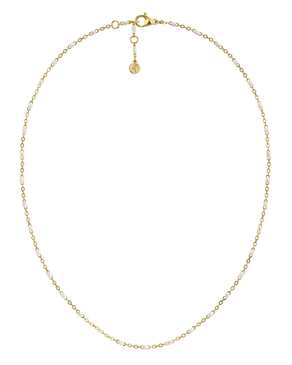 Edblad Perlina Chain Necklace White Gold – somrigt halsband med vita emaljpärlor och 14K guldplätering. Perfekt till solbrännan. Nickelsäkert.