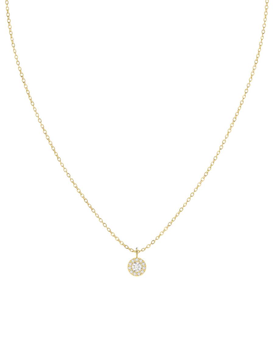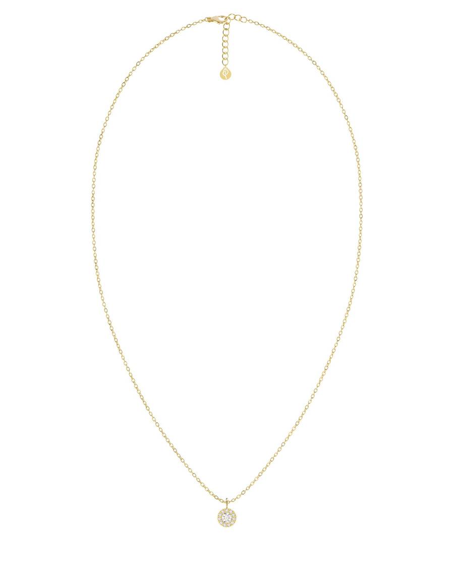 Thassos är en av våra toppsäljande serier med många delar att matcha till både vardag och fest. Thassos halsband S har en mindre rund dekoration med en stor och 11 små klara stenar som hålls av en tunn kedja, här i blank 14K guldplätering. Thassos är också en mycket uppskattad present.
