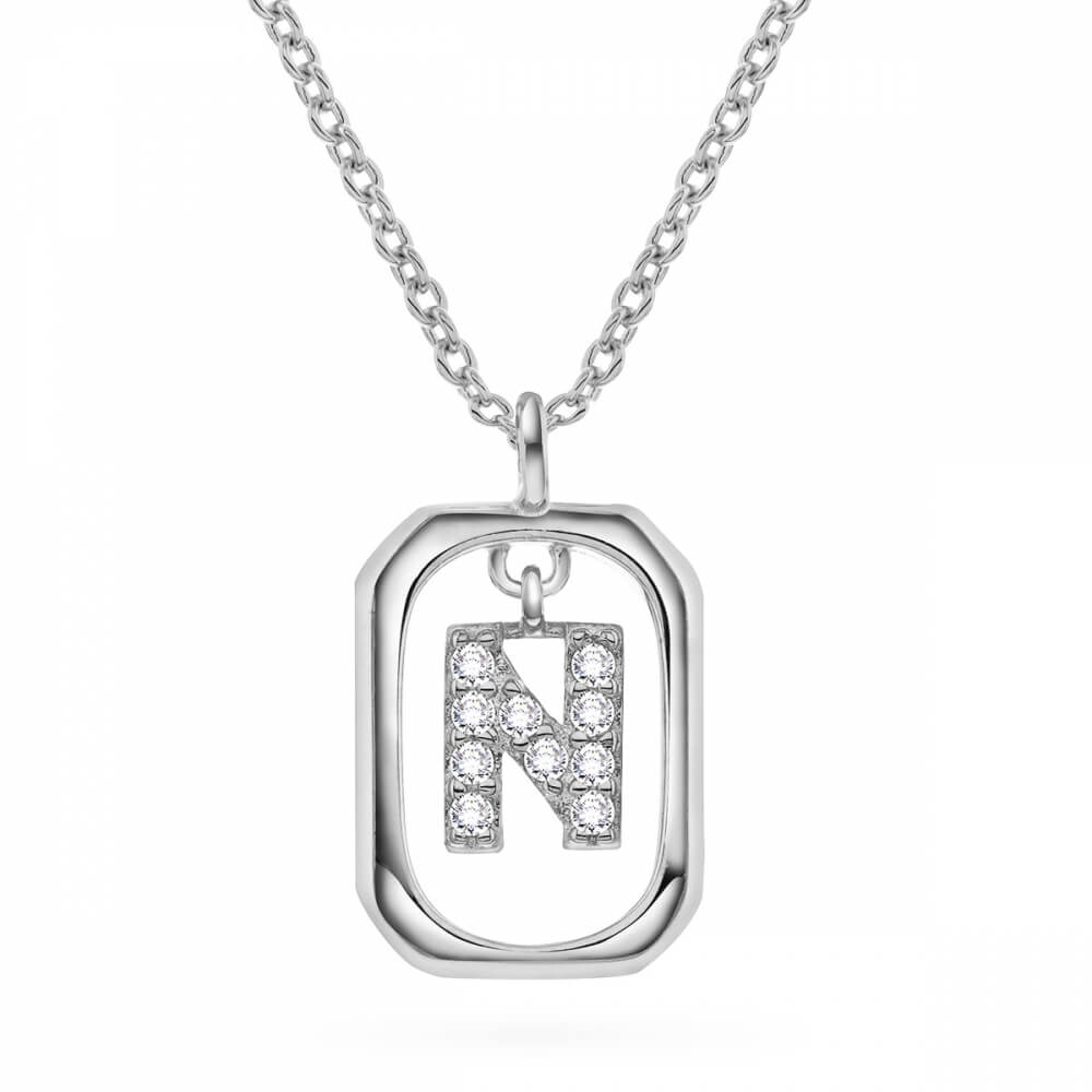 Personligt Halsband i Silver med Gnistrande Bokstaven N