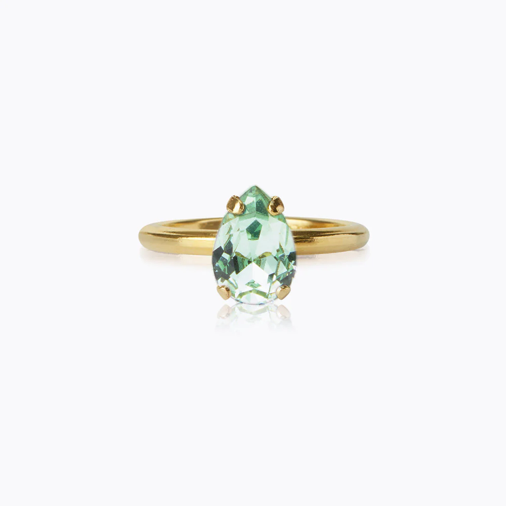Petite Drop Ring är en förtjusande ring med en liten droppformad kristall av högsta kvalitet. Basen är tillverkad av 18 karat guld- eller rhodiumpläterad mässing och är justerbar för en perfekt passform. En ring som kompletterar alla stilar, både till vardags och till fest.