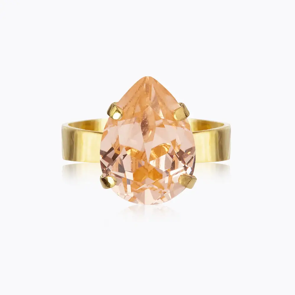 Mini Drop Ring pryds av en droppformad kristall av högsta kvalitet och passar alla fingrar tack vare den öppna baksidan som lätt kan justeras från cirka 16 till 21 mm. Denna ring är den perfekta detaljen för varje tillfälle och finns tillgänglig i flera olika kristallfärger.