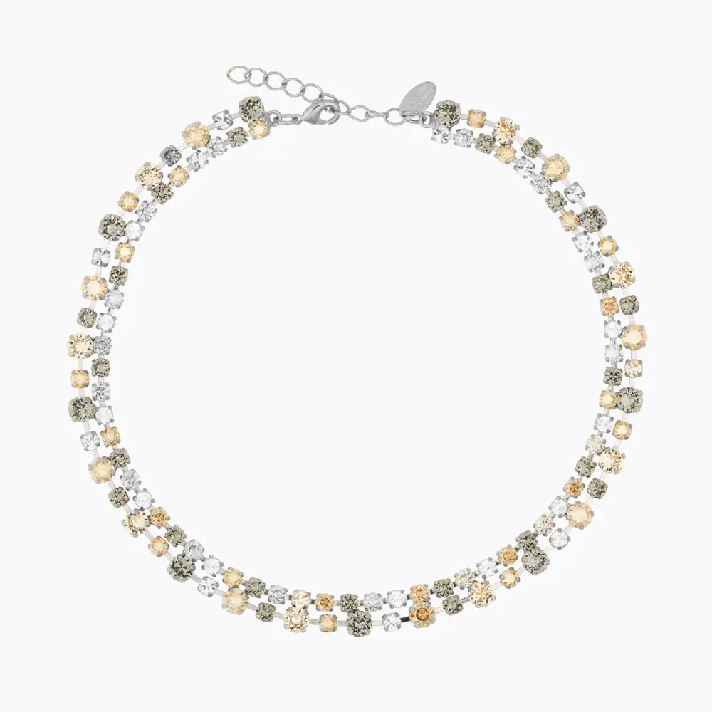 Caroline Svedbom Mini Pomona Necklace Black Golden Combo – lekfullt halsband med kristaller. Designat i Sverige, handgjort i Grekland.
