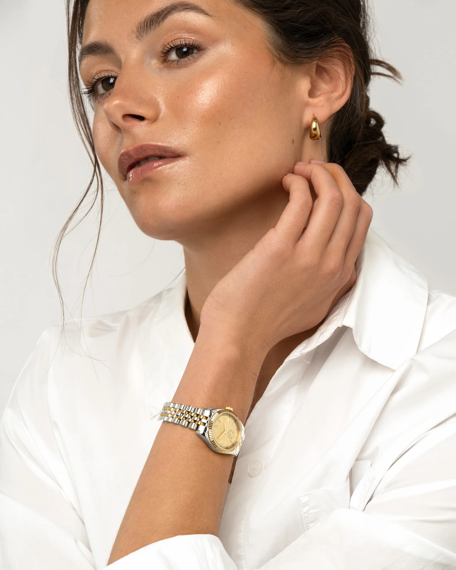 Mockberg Royal BIC 28 mm är mer än bara en tidvisare – den är ett smycke för den moderna stilmedvetna. Dess exklusiva tvåfärgade design och möjlighet till personlig gravering gör den till det perfekta valet för: