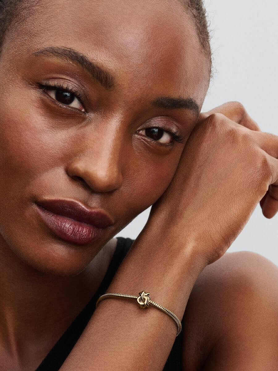 Evighetsknuten passar perfekt in i Pandoras kollektion av symboliska smycken, och gör sig fin både på armband och halsband. Kombinera gärna med andra berlocker som representerar dina personliga värderingar och upplevelser.