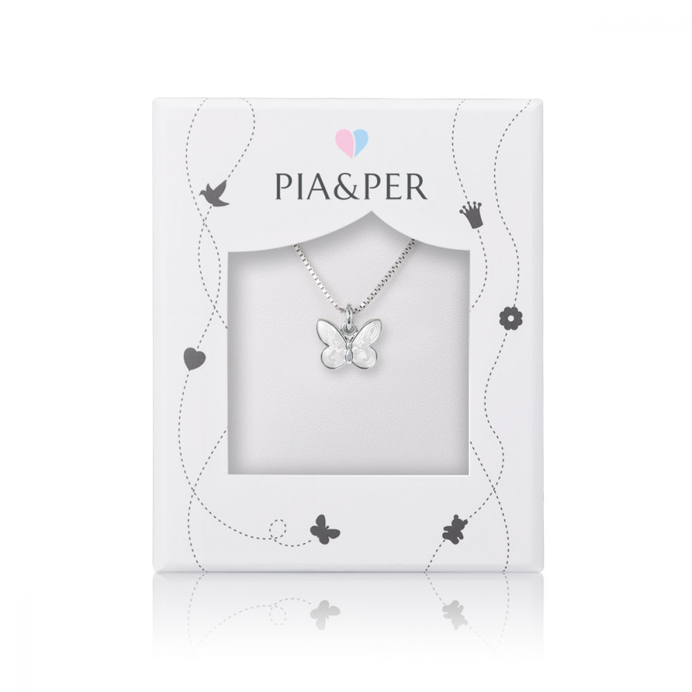 Pia & Per Halsband i silver – Vit fjäril