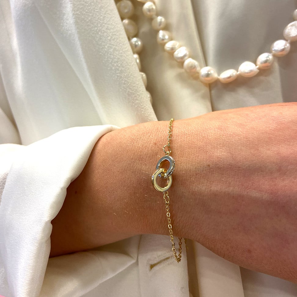 Kedjearmband med två ringar som är sammankopplade, armbandet har justerbara länkar