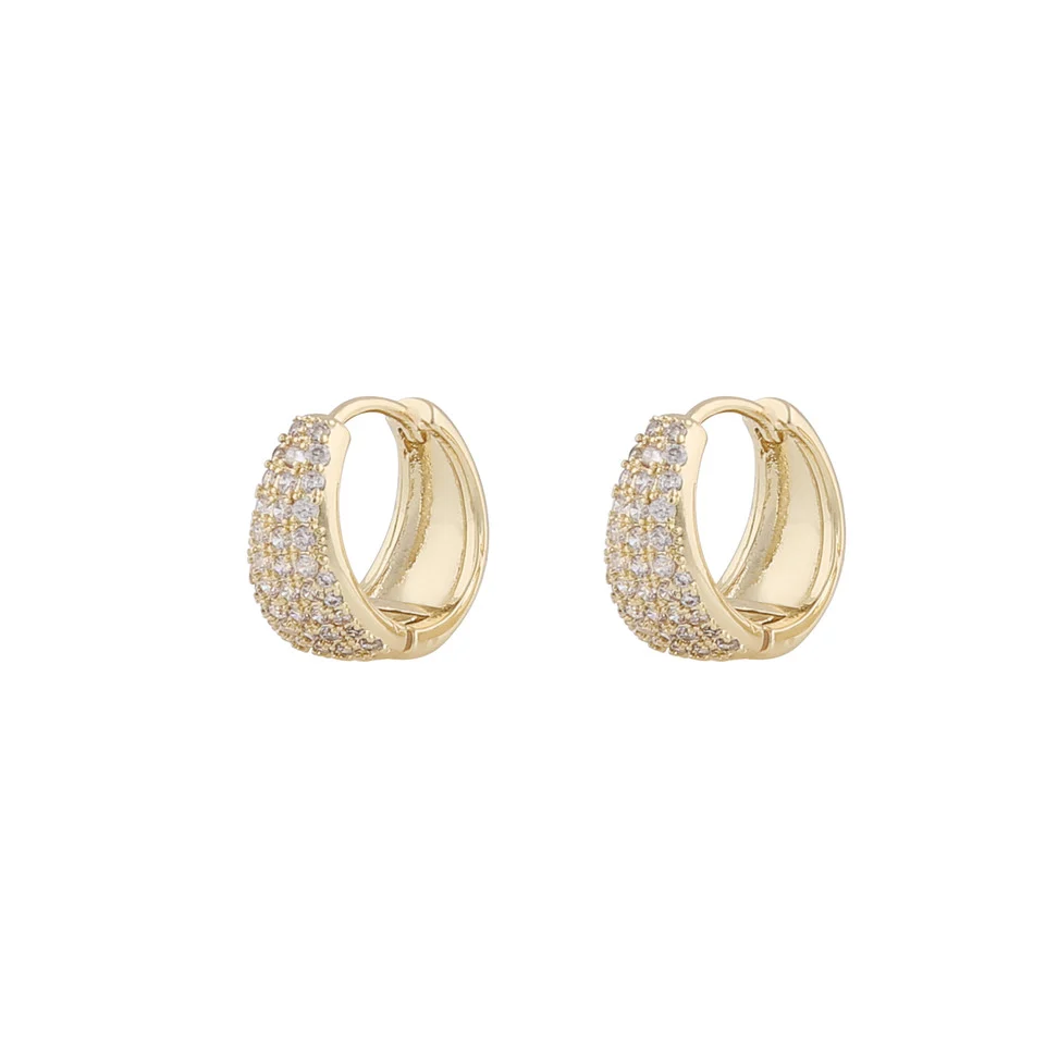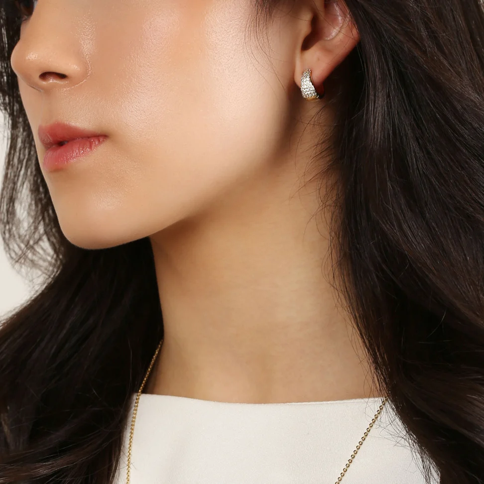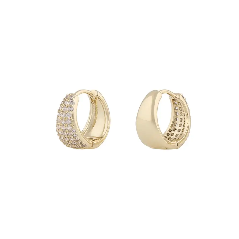 Dessa snygga örhängen har guldringar med glittrande stenar på ena sidan och en slät design på den andra. Bär dem med valfri sida framåt för en glittrande eller stilren look.