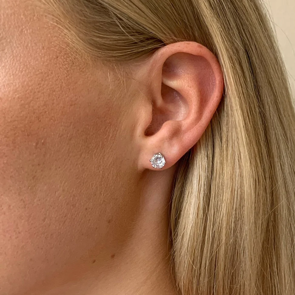 Snö Lady Small Earring silver, Klassiska örhängen med en större och klar, fint infattad sten i cubic zirconia.