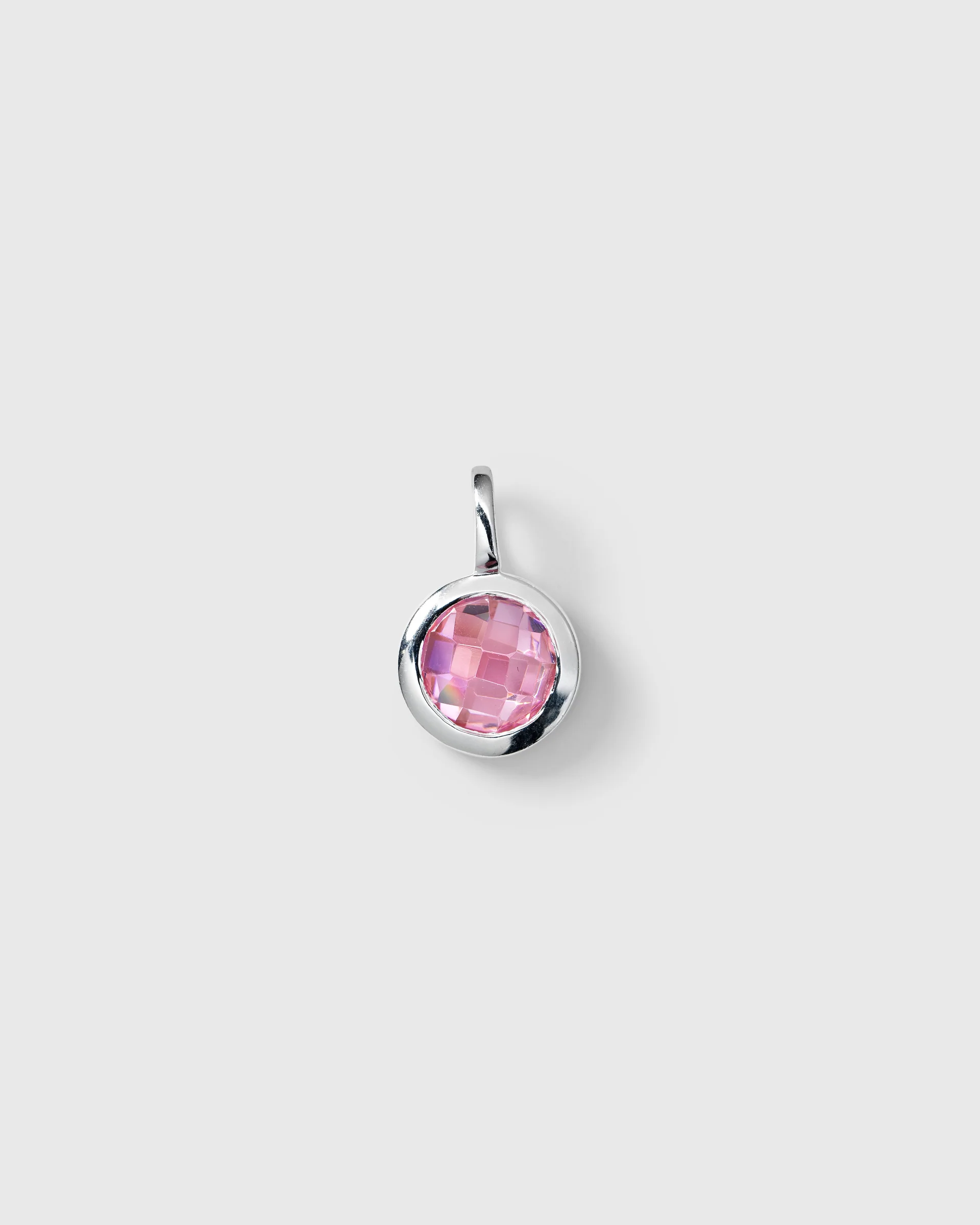 Syster P Beloved Birthstone October Silver – handgjord berlock med rosa turmalin (kubisk zirkonia) i 925 återvunnet sterlingsilver. Oktobers månadssten.
