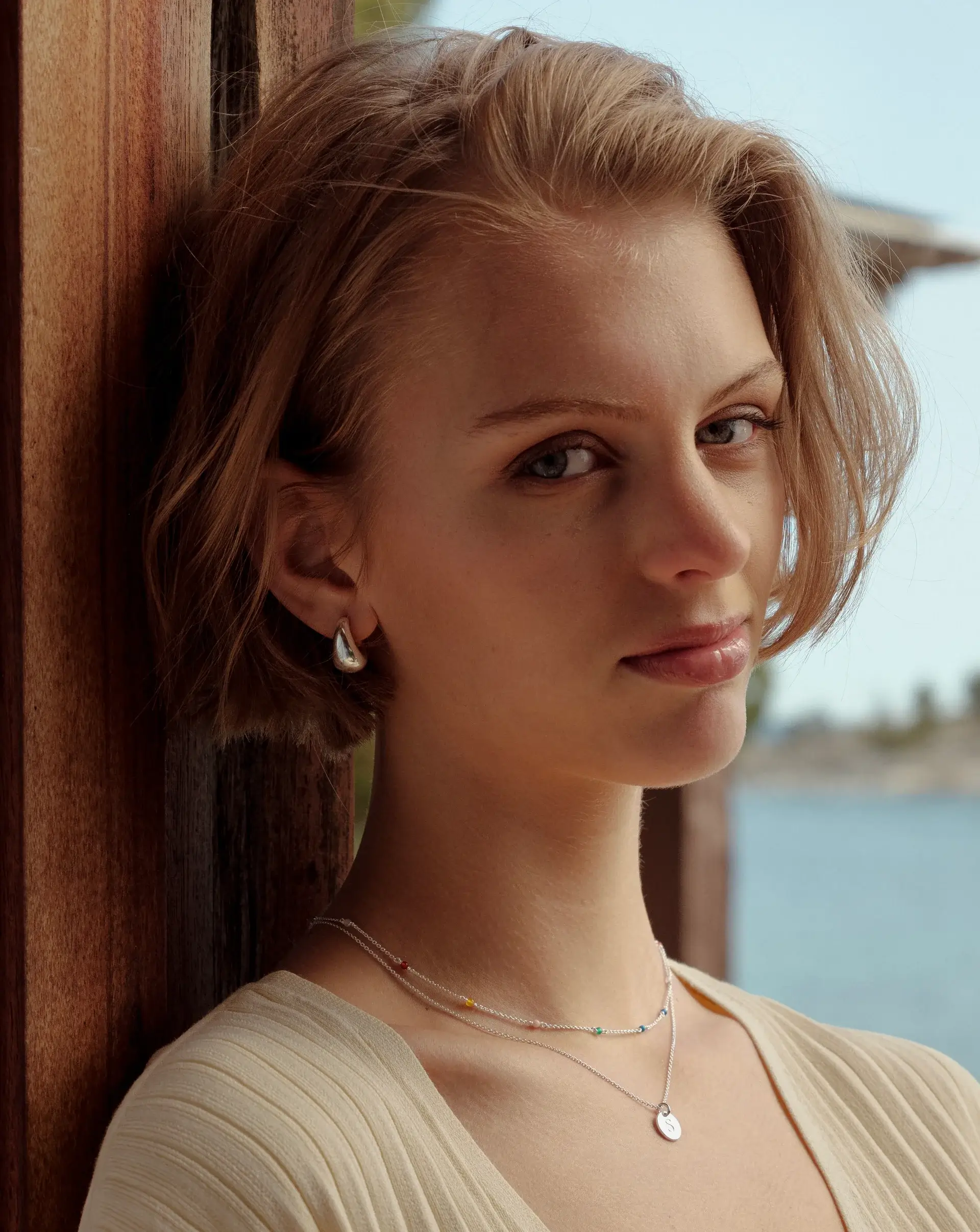 Dessa populära örhängen är tillverkade i 100 % återvunnet sterlingsilver, vilket gör dem till ett medvetet och hållbart val. Den minimalistiska men kraftfulla designen gör att de passar lika bra till vardagens jeanslook som till kvällens klänning.