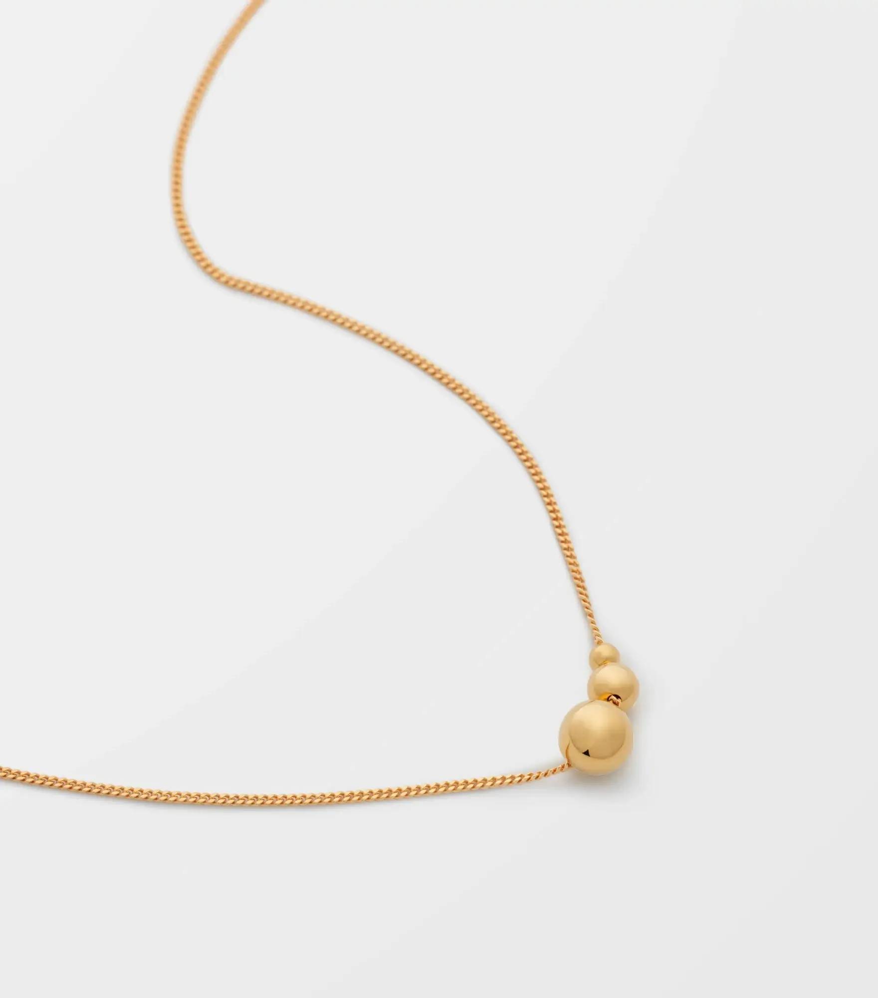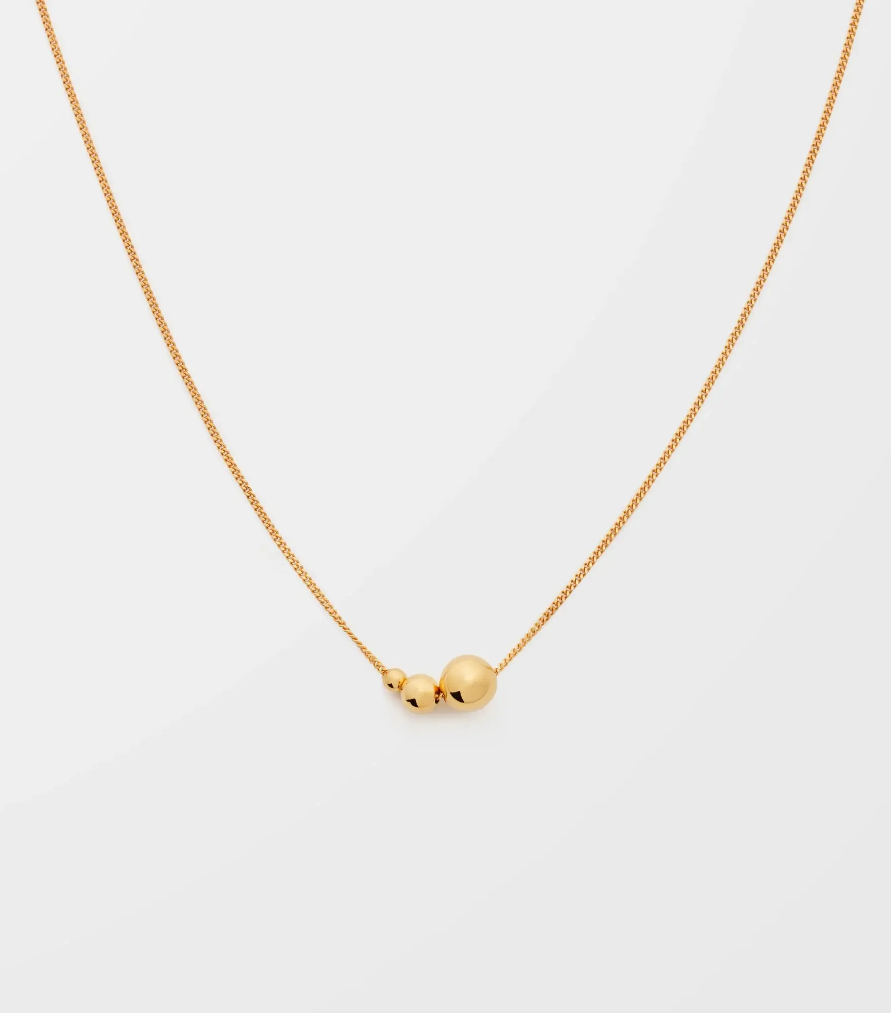 Stilrent kort halsband tillverkat i 100% återvunnet silver, pläterat med 18K guld. Halsbandet har tre kulor i olika storlekar trädda på kedjan. Matcha med andra smycken ur Universe-kollektionen för en fulländad look.
