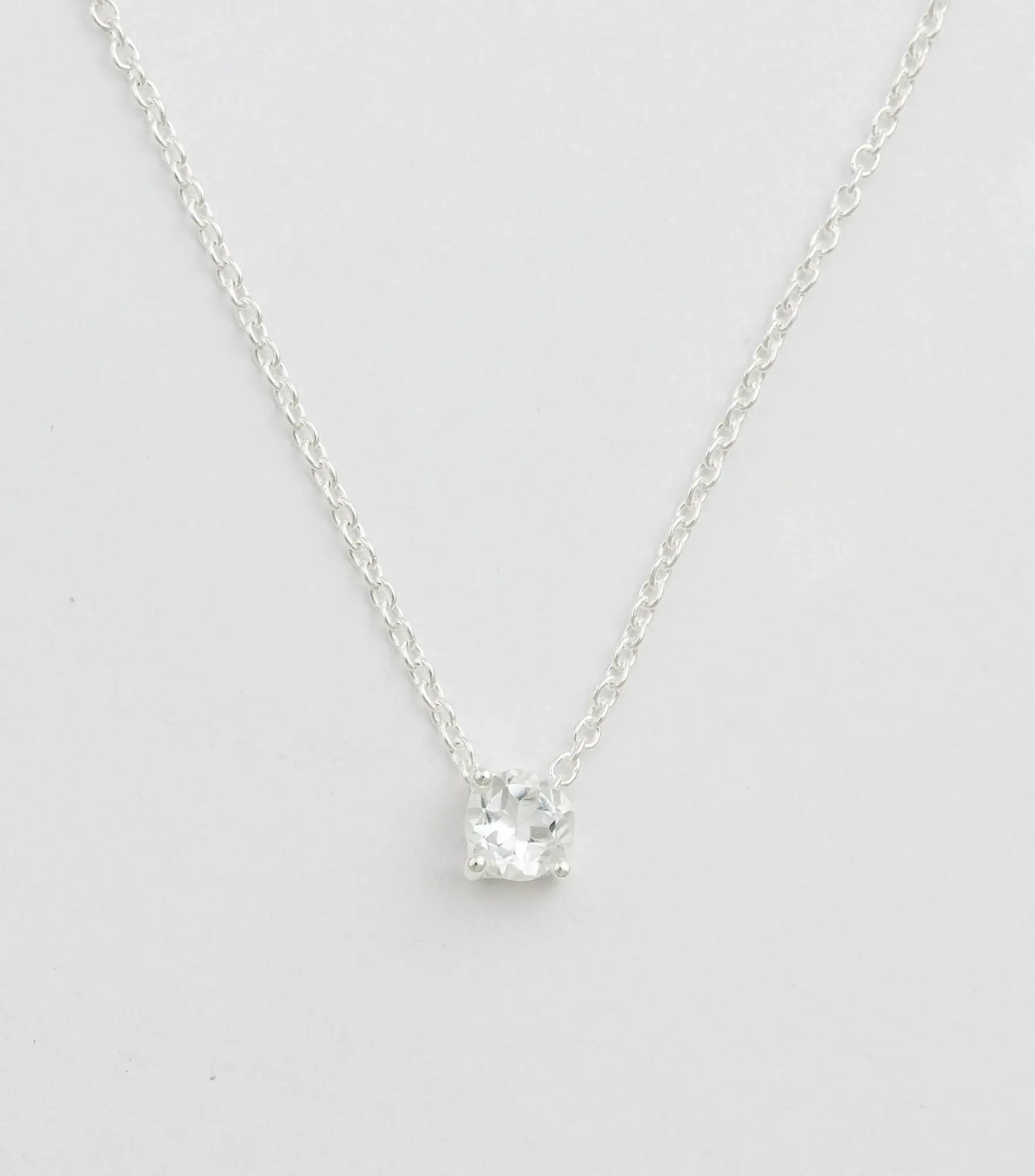 Solo Nova Necklace is a thin delicate necklace made of 100% recycled silver. The necklace has a small setting with white topaz directly on the chain. Stylish and classic!