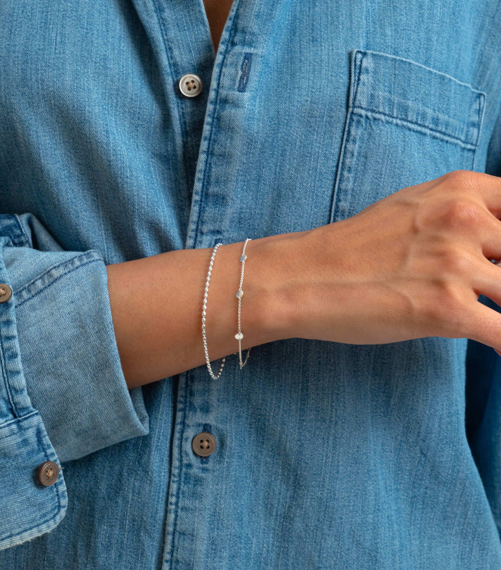 Ett unikt, tunt armband dekorerat med små runda hamrade cirklar som ger smycket en fin handgjord känsla. Tillverkat i 100% återvunnet sterlingsilver. Perfekt att bära ensamt eller i kombination med andra smycken.