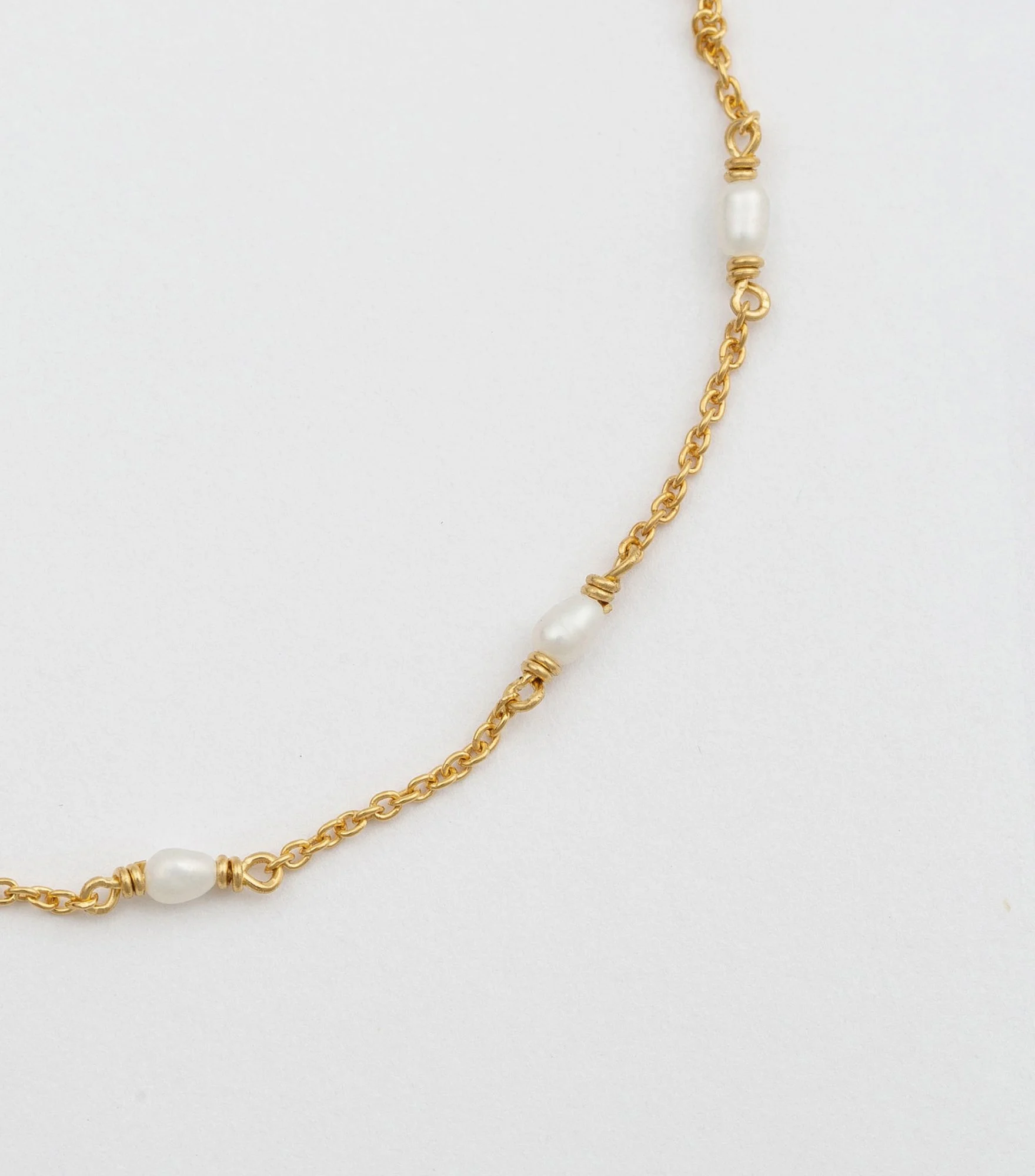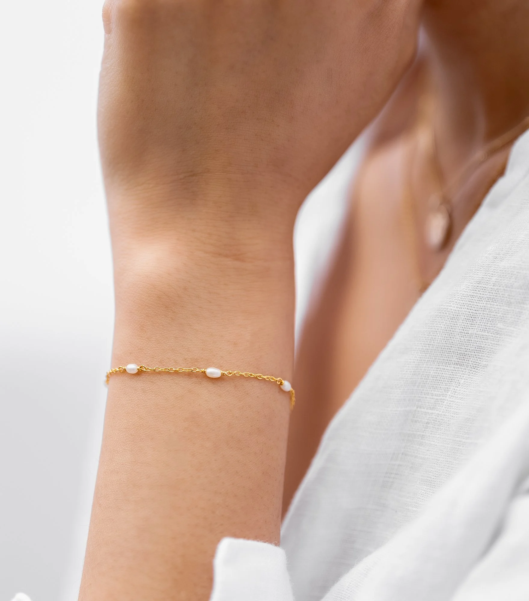 Bär med dig sommarkänslan vart du än går! Vackert armband med en unik kedja utsmyckad med nätta sötvattenpärlor. Tillverkad i 100% återvunnet silver, pläterat med 18K guld. Kombinera det gärna med andra smycken ur samma kollektion!