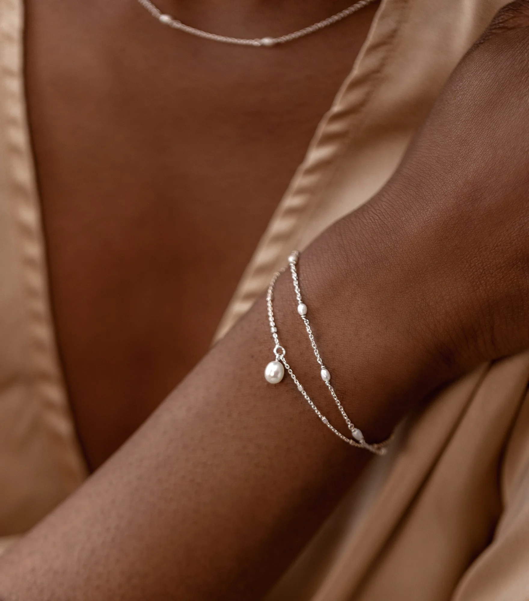 Bär med dig sommarkänslan vart du än går! Vackert armband med en unik kedja utsmyckad med en droppformad sötvattenpärla. Tillverkad i 100% återvunnet silver. Kombinera det gärna med andra smycken ur samma kollektion!