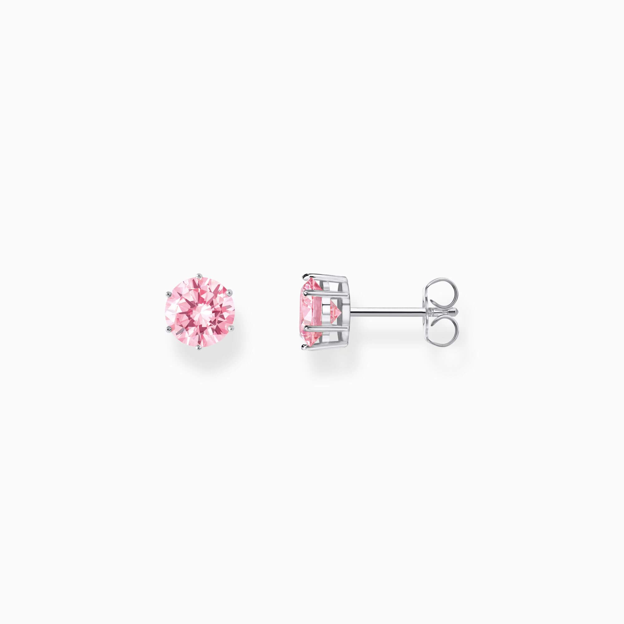 Silverörhängen med stor, rosa zirkonia