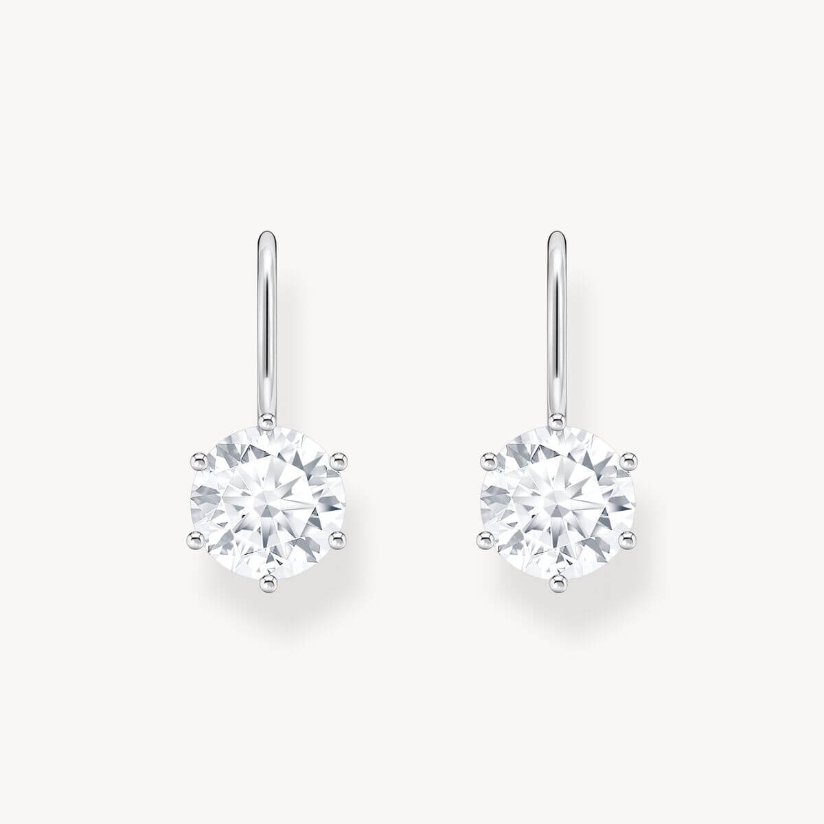 Tidlösa silverörhängen från Thomas Sabo med stor vit rundslipad zirkoniasten. Tillverkade i återvunnet 925 silver med bekväma örhängeskrokar.